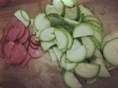 3. 切角瓜:切角瓜时,要顺着角瓜的纹理切,这样口感更佳。如果是要凉拌,可以将角瓜切成薄片;如果是要炒菜,可以将角瓜切成细丝。