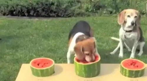 一个狗狗用鼻子轻轻一拱,西瓜滚到了它的面前。它兴奋地摇着尾巴,用嘴巴轻轻咬了一口。这瓜真甜啊!另一个狗狗见状,也忍不住凑了过来,它们你一口我一口,吃得津津有味。